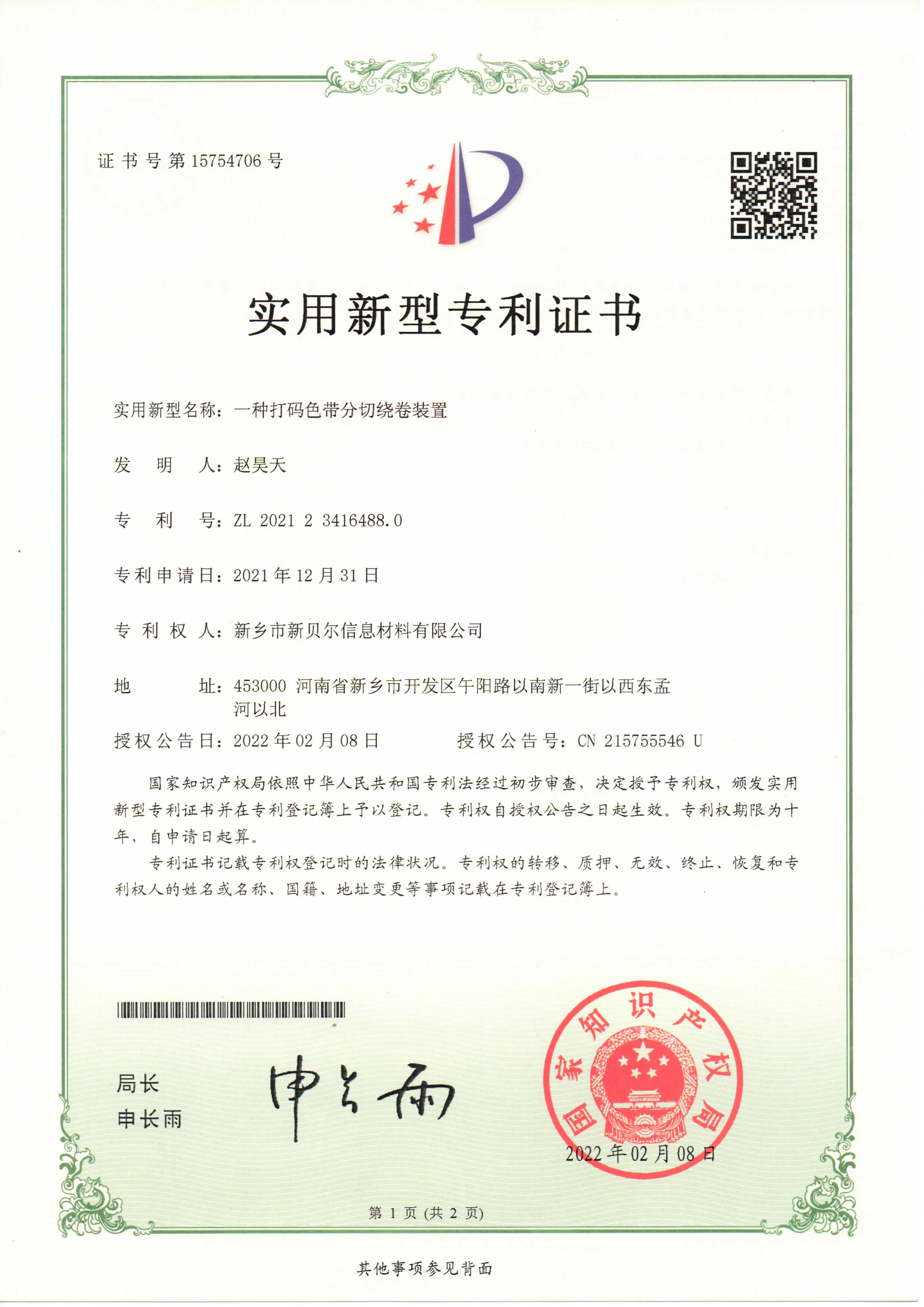新鄉(xiāng)市新貝爾信息材料有限公司研發(fā)生產(chǎn)信息記錄材料包括輸液軟袋用熱轉(zhuǎn)印膜、條碼碳帶、打碼色帶的高科技企業(yè),位于新鄉(xiāng)市國(guó)家高新技術(shù)產(chǎn)業(yè)開(kāi)發(fā)區(qū)午陽(yáng)路1號(hào),占地50余畝,廠(chǎng)房面積2萬(wàn)余平方。公司從事信息記錄材料的研發(fā)與生產(chǎn)已近十年。